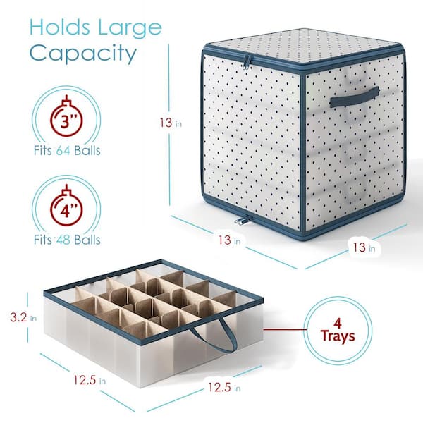 Blue Polyethylene Medium Christmas Ornament Storage Box with Tray Dividers