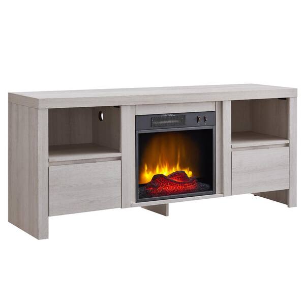 58 in. Console Style Media Electric Fireplace, Closed Storage in White Washed Oak