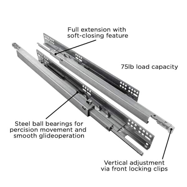 Drawer Slide Undermount Soft Close 75 lbs. Capacity Full Extension 18 in. Cadmium Finish (1-Set of Pair)
