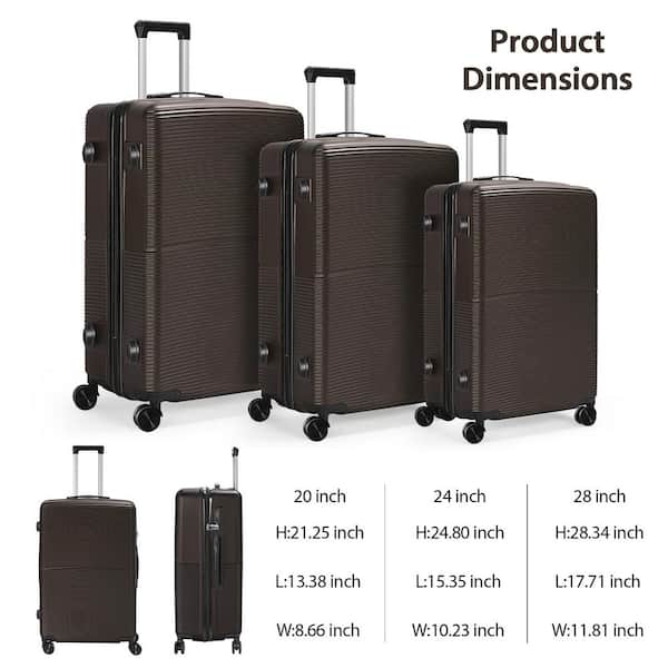3-Piece Spinner Luggage Set, Hard Shell Case with TSA Lock in Coffee Brown