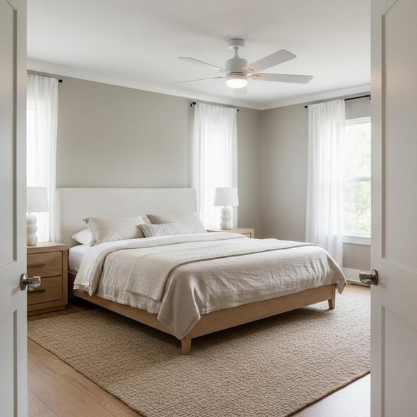 • Traditional 5-blade ceiling fan in a neutral chalk white finish