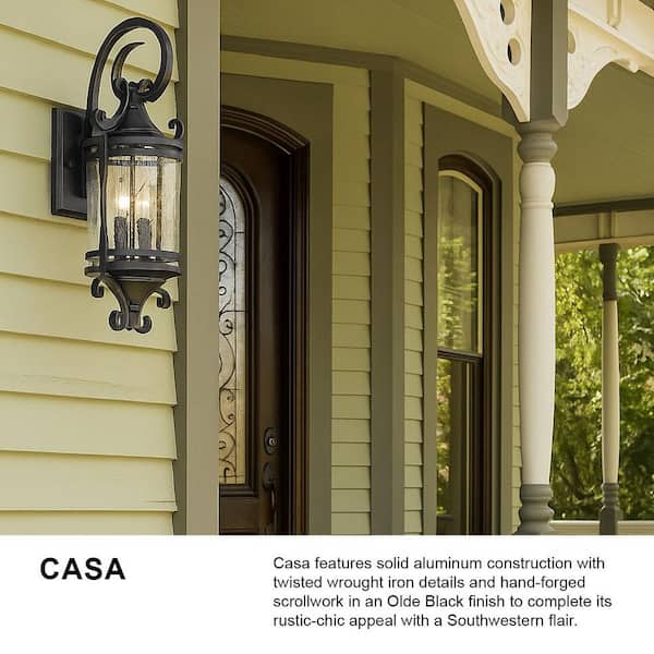 Casa 1-Light Olde Black With Clear Seedy Glass Hardwired Outdoor Wall Lantern Sconce