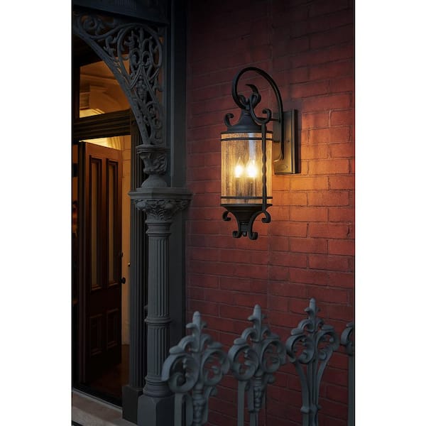 Casa 2-Light Olde Black With Clear Seedy Glass Hardwired Outdoor Wall Lantern Sconce