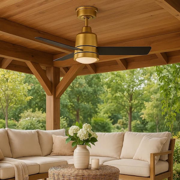 Chet 36.0 in. Indoor/Outdoor Integrated LED Heritage Brass Ceiling Fan with Remote Control