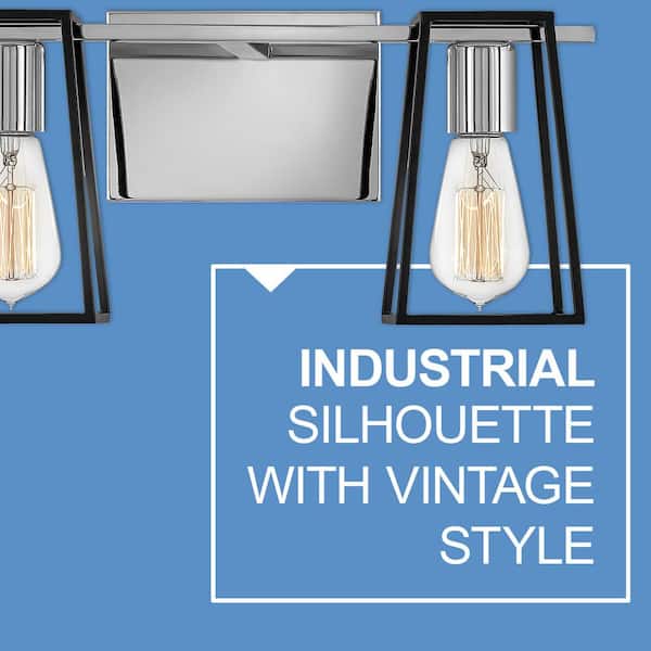 • Sturdy, angular lines converge in an vintage, open frame fixture