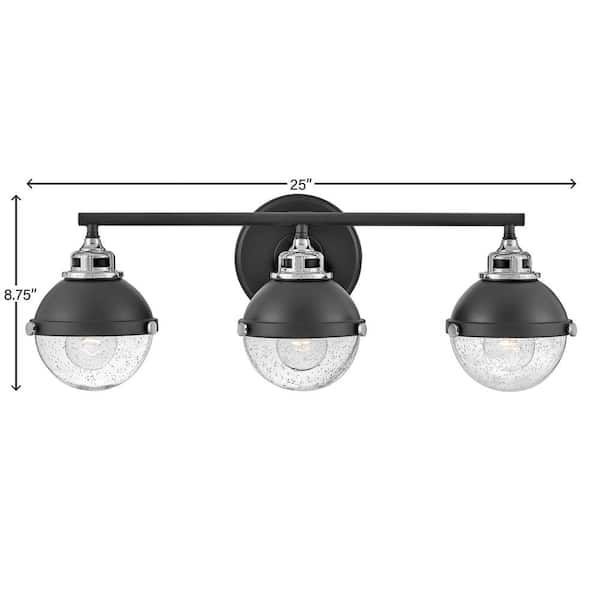 Fletcher 25.0 in. 3 Light Black Vanity Light