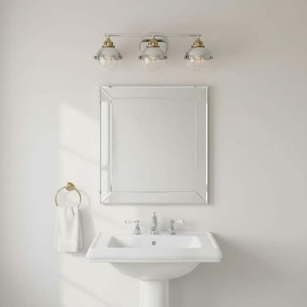 • Trendy 2-toned finish in polished nickel and heritage brass