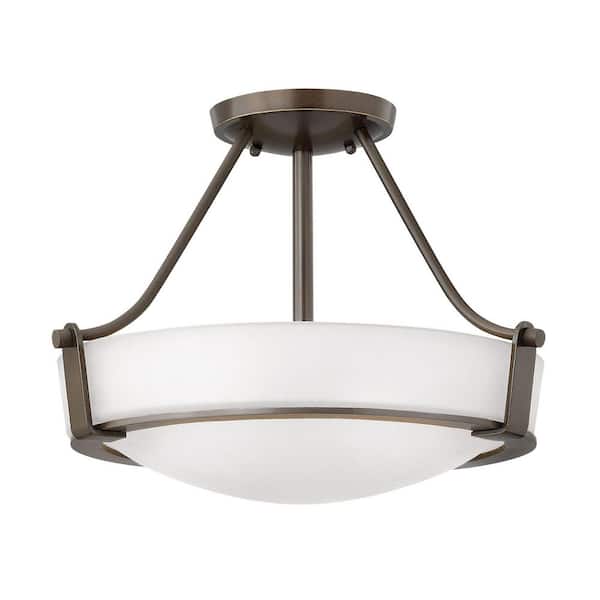 Hathaway 16 In. 3-Light Olde Bronze with Etched White Glass Semi-Flush Mount