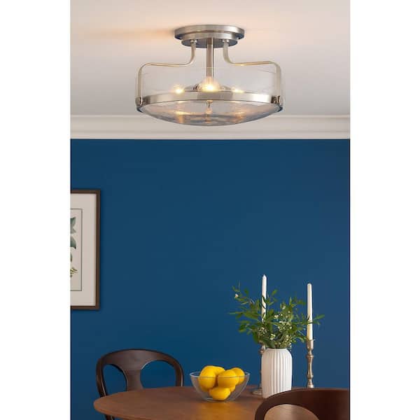 Hinkley Harper Large Semi-Flush Ceiling Light, Brushed Nickel + Clear Seedy Glass