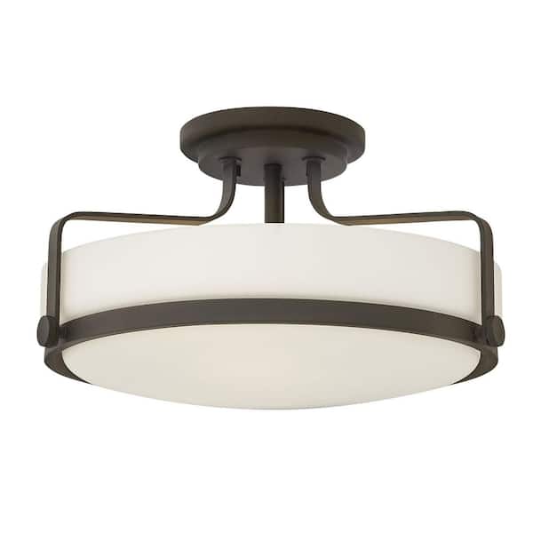Hinkley Harper Large Semi-Flush Ceiling Light, Oil Rubbed Bronze + Etched Opal Glass