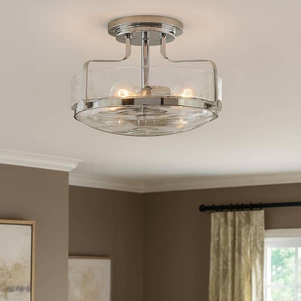 Hinkley Harper Medium Semi-Flush Mount Ceiling Light, Chrome + Clear Seedy Glass