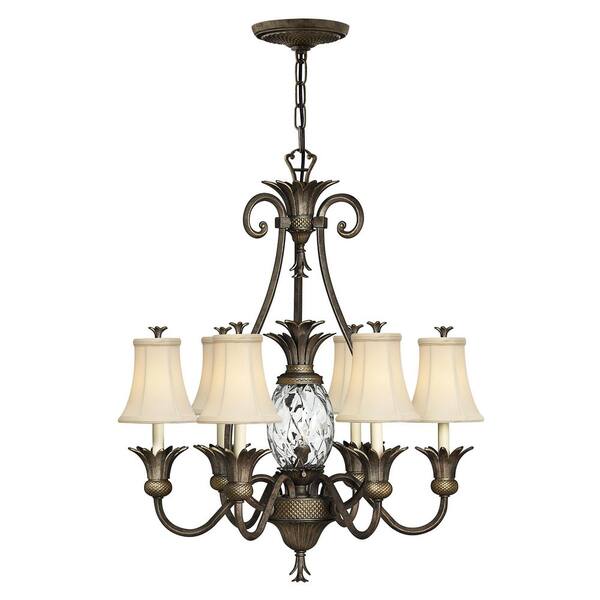Plantation 7-Light Pearl Bronze Shaded Mini Pendant With Ivory Silk Shade.