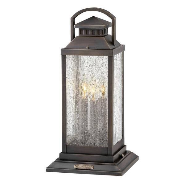 Revere 20.25 in. 3-Light Blackened Brass Low Voltage Outdoor Pier Mount Light
