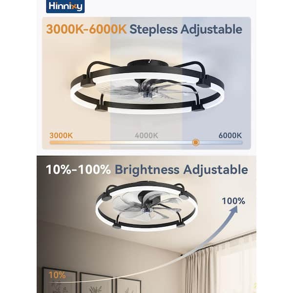 24 in. Dimmable LED Smart Indoor Black Modern Flush Mount Low Profile Ceiling Fan with Light and Remote Control and APP