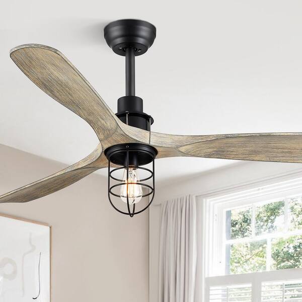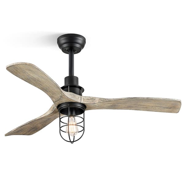42 in. Indoor Matte Black Downrod 6-Speeds Farmhouse Caged Ceiling Fan with Light Kit and Remote Control DC Motor