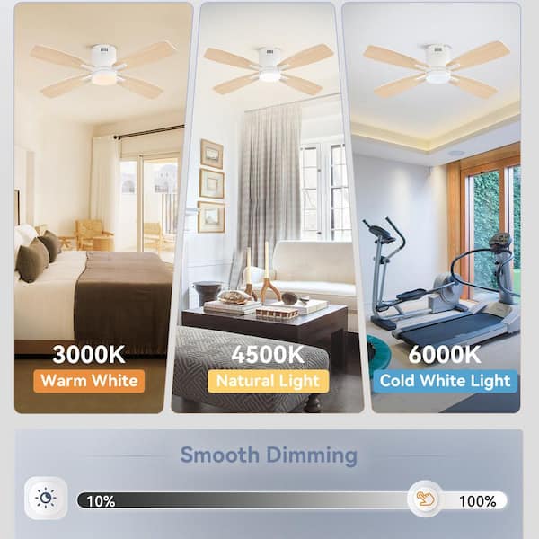 46 in. Indoor/Outdoor LED Matte White Standard Ceiling Fan with Light Kit and App Control and Remote Control