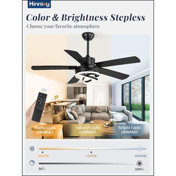 52 in. Indoor Black Farmhouse 6-Speed 5-Dual Finish Blade Chandelier Ceiling Fan with Light Kit and Remote Control