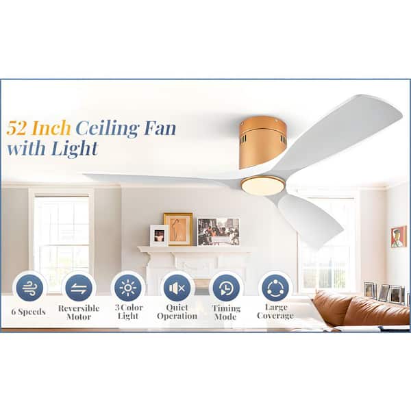 52 in. Integrated LED Indoor/Outdoor Gold White-Blades Ceiling Fan with Light Kit and Remote Control