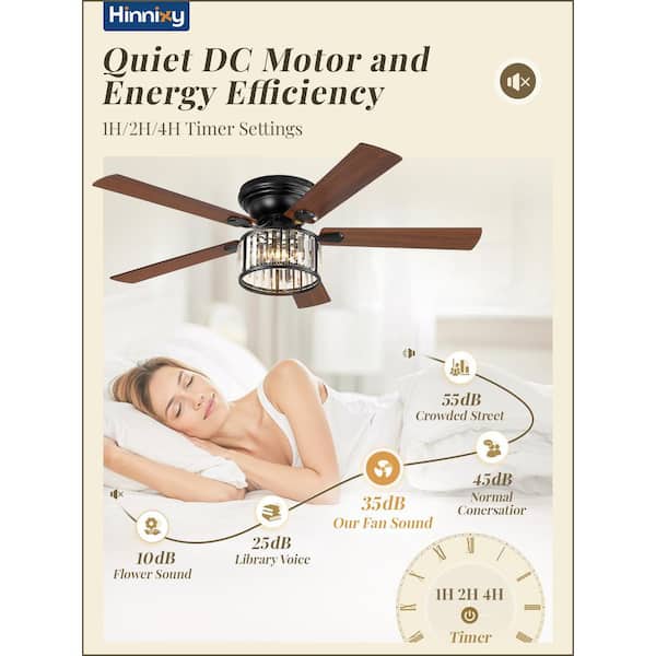 56 in. Smart Indoor Black Crystal Flush Mount 6-Speed Ceiling Fan with Lights and Remote Control Living Room Bedroom
