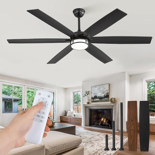 65 in. Indoor Black Downrod/Angled Mount 6-Speed Ceiling Fan with 3-Color Light Kit, Dual-Finish Blades, Remote Control