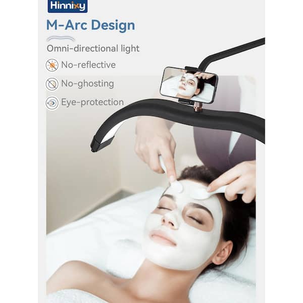 71 in. Black Indoor Dimmable Eyelash Esthetician M-Arc Floor Lamp for facial, nail and tattoo care with Ajustable Hight