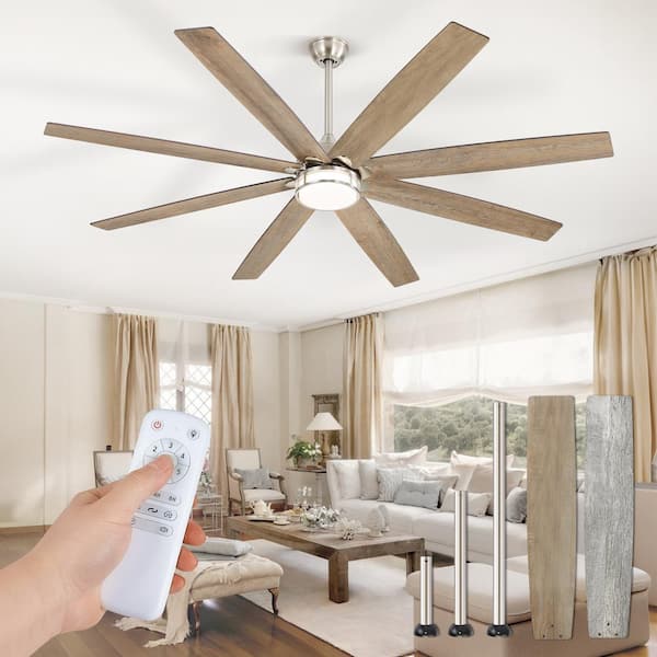 72 in. Indoor Nickel Downrod/Angled Mount 6-Speed Ceiling Fan with 3-Color Light Kit, Dual-Finish Blades, Remote Control