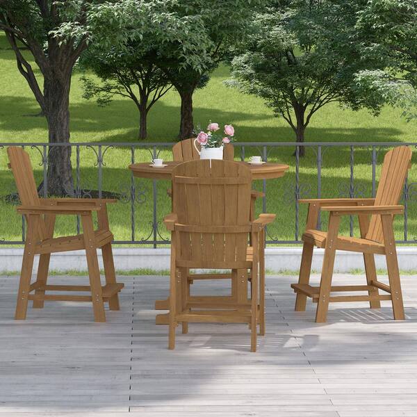 HIPS Patio Bar Table with Umbrella Hole 1.97 in. Table Pub for Balcony, Garden, Backyard, Fire Pit, Lawn, Apartment Teak