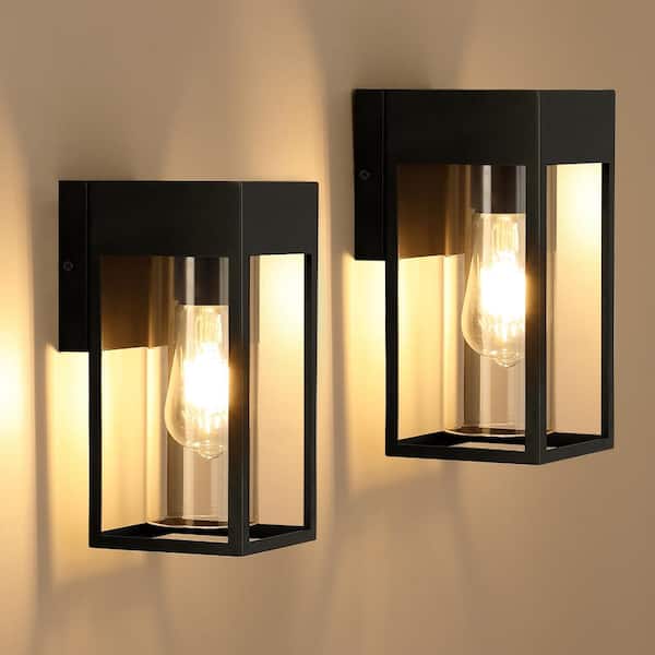 10.2 in. Black Modern Porch Lights Outdoor Hardwired Wall Lantern Sconce with No Bulbs Included (2-Pack)