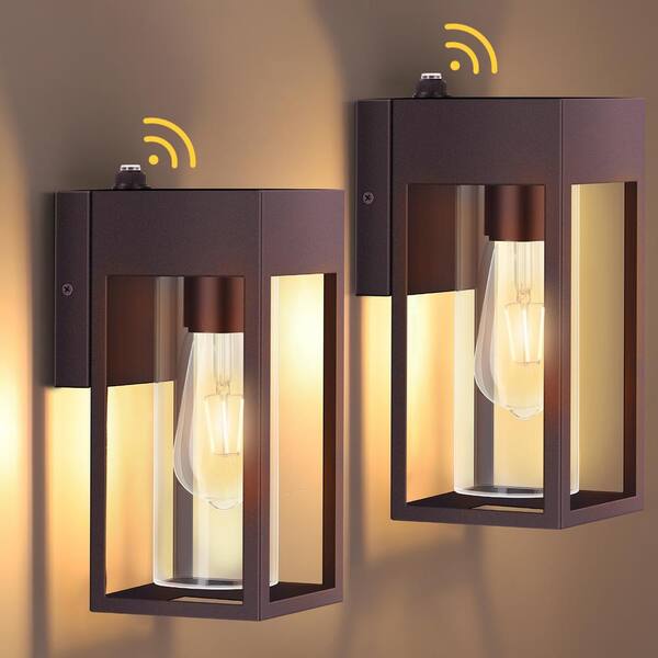 10.2 in. Caramel Dusk to Dawn Modern Porch Lights Outdoor Hardwired Wall Lantern Sconce with No Bulbs Included (1-Pack)