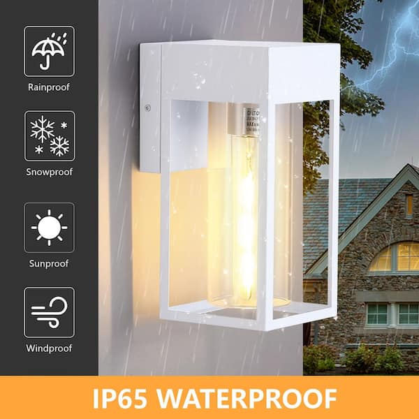 10.2 in. White Modern Porch Lights Outdoor Hardwired Wall Lantern Sconce with No Bulbs Included (1-Pack)