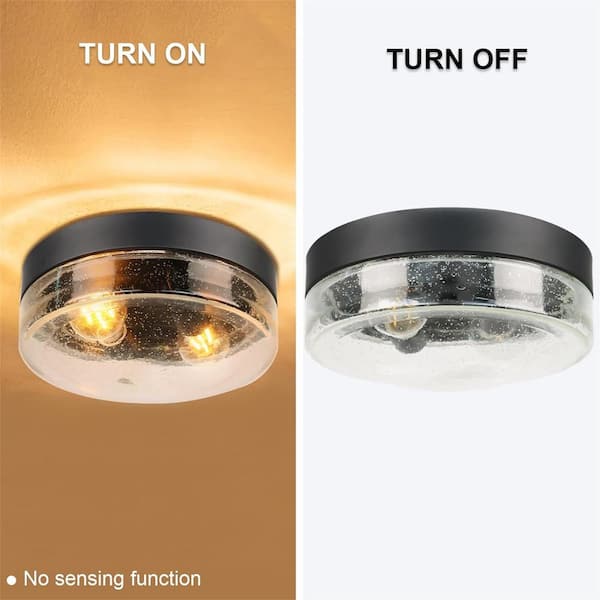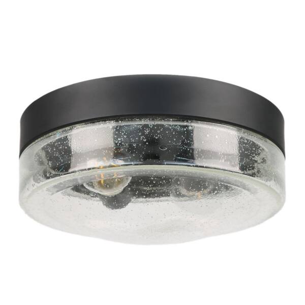10.75 in. 2-Light Black Flush Mount Ceiling Light with Seeded Glass Shade and No Bulbs Included