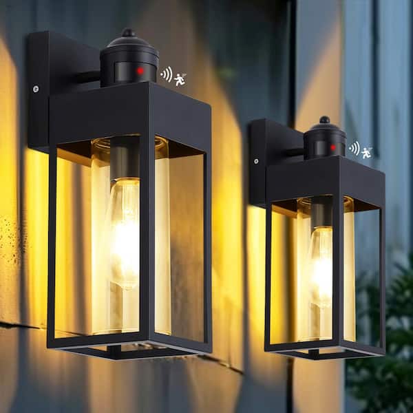 13.2 in. Black Motion Sensing Modern Porch Lights Outdoor Hardwired Wall Lantern Sconce with No Bulbs Included (2-Pack)