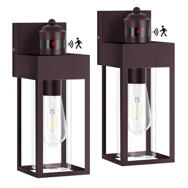 13.2 in. Caramel Motion Sensing Modern Porch Lights Outdoor Hardwired Wall Lantern Sconce with No Bulbs Included(2-Pack)