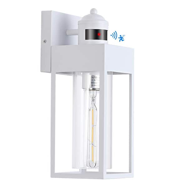 13.2 in. White Motion Sensing Modern Porch Lights Outdoor Hardwired Wall Lantern Sconce with No Bulbs Included (1-Pack)
