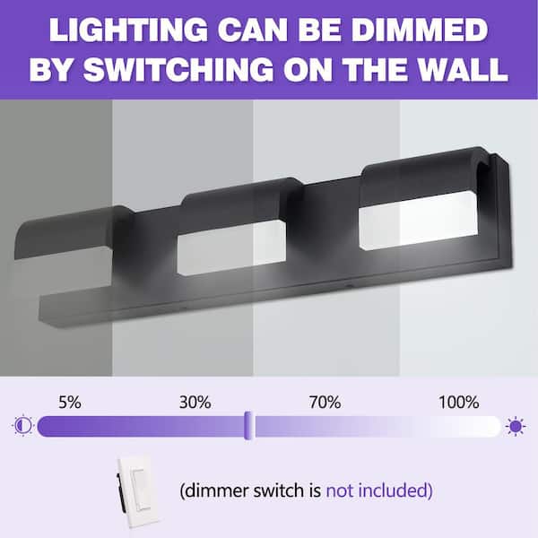 21.7 in. 3-Light Black LED Bathroom Vanity Light Over Mirror Wall Light