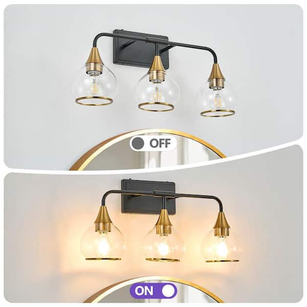 22.6 in. 3-Light Black and Gold Vanity Light with Clear Glass Shade
