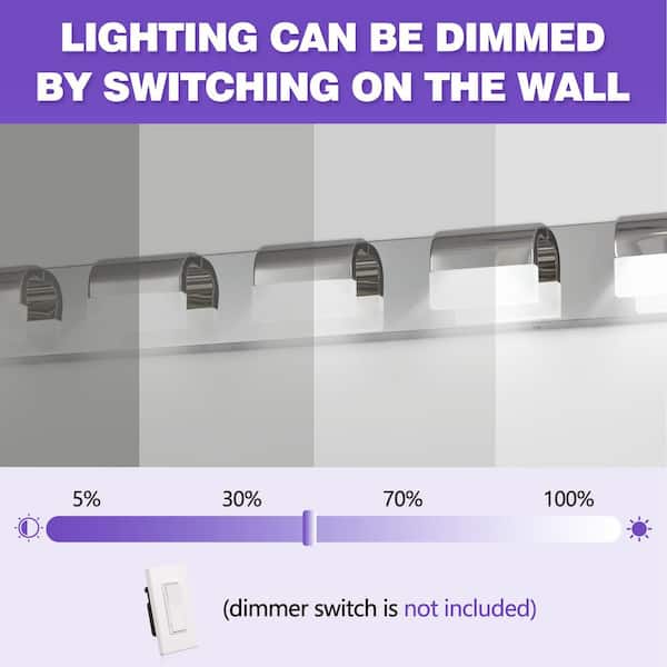 46.5 in. 6-Light Chrome LED Bathroom Vanity Light Over Mirror Wall Light