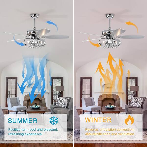 52 in. Indoor Chrome Ceiling Fan with Flower-Shaped Lampshade, 2-Color-Option Blades and Remote Included