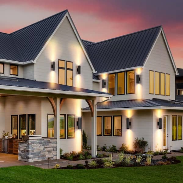 Black Outdoor Hardwired Cylinder Wall Light Lantern Sconce with Integrated LED Up Down Lights (12-Pack)