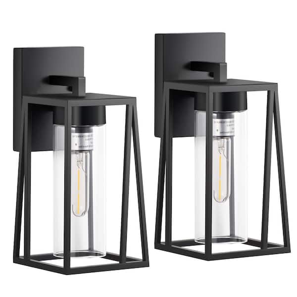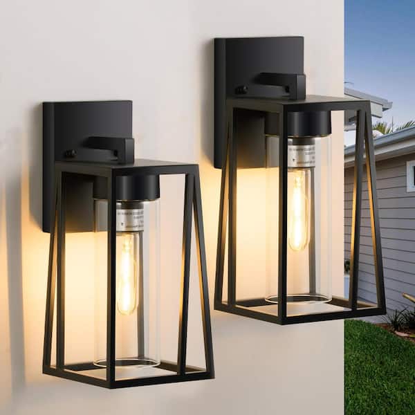 Black Outdoor Hardwired Wall Lantern Sconce Trapezoid Wall Light with No Bulbs Included