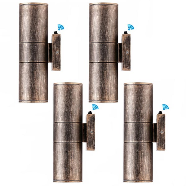 Bronze Dusk to Dawn Outdoor Hardwired Cylinder Wall Lantern Sconce with Up Integrated LED Down Lights (4-Pack)