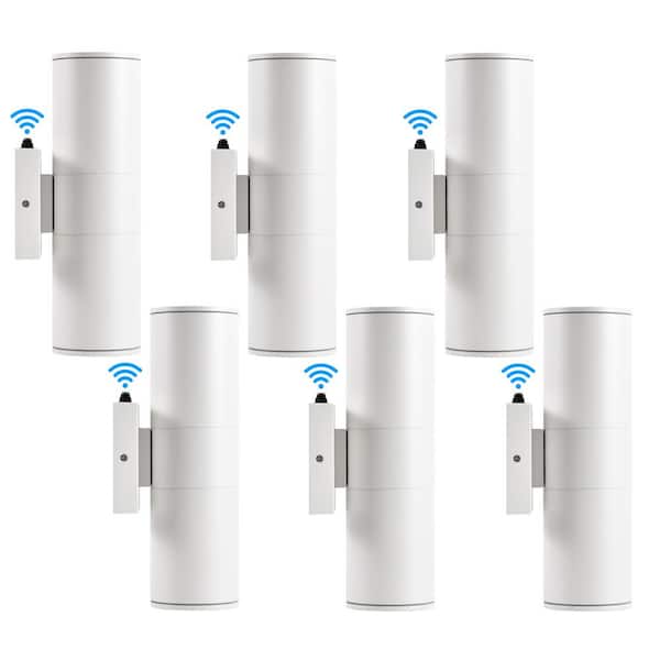 White Dusk to Dawn Outdoor Hardwired Cylinder Wall Lantern Sconce with Integrated LED Up Down Lights (6-Pack)