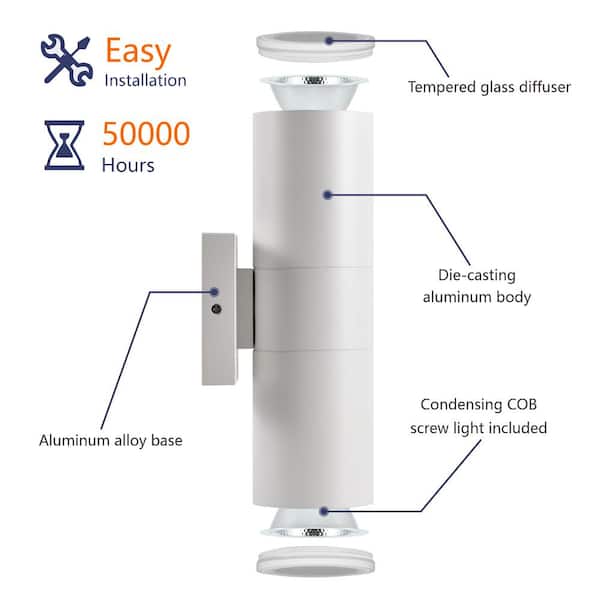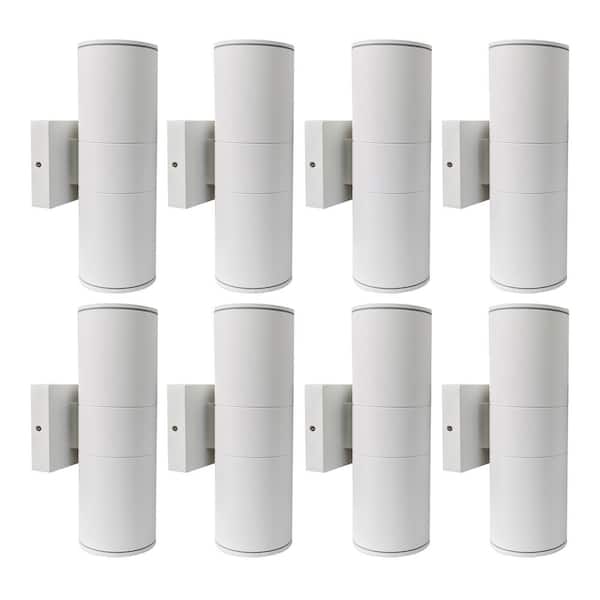 White Outdoor Hardwired Cylinder Wall Light Lantern Sconce with Integrated LED Up Down Lights (8-Pack)