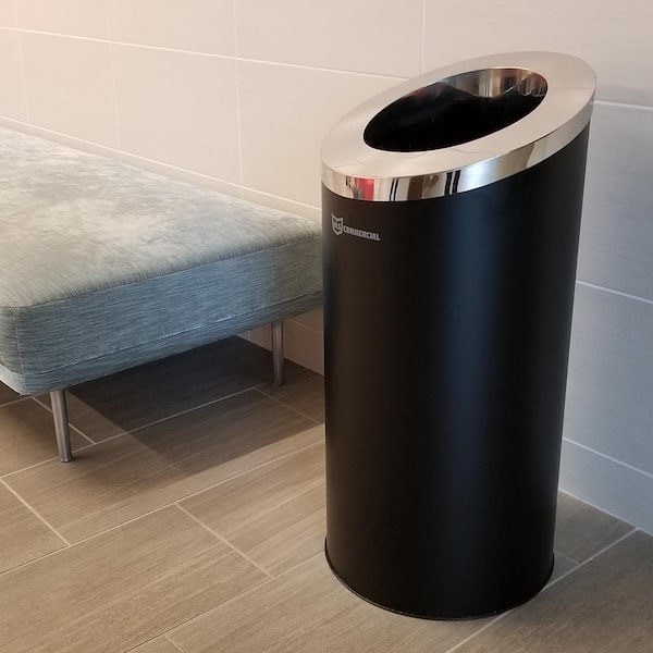 15 Gal. Black Stainless Steel Trash Can with Galvanized Inner Bin, Round Beveled Open Top Bin for Office Lobby, Restroom