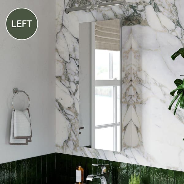 12 in. W x 30 in. H Rectangular Aluminum Left Medicine Cabinet with Mirror Wall Mount Mirrored Bathroom Storage Cabinet