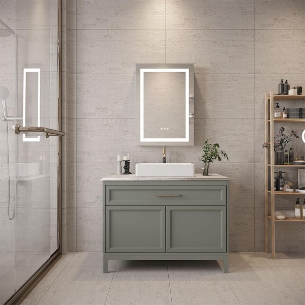 20 in. W x 26 in. H Rectangular Aluminum Right Recessed or Surface Mount LED Light Bathroom Medicine Cabinet with Mirror