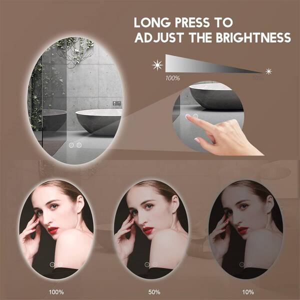 20 in. W x 28 in. H Oval Frameless Backlit Wall Bathroom Vanity Mirror Smart Anti-Fog Dimmable LED Illuminated Mirror