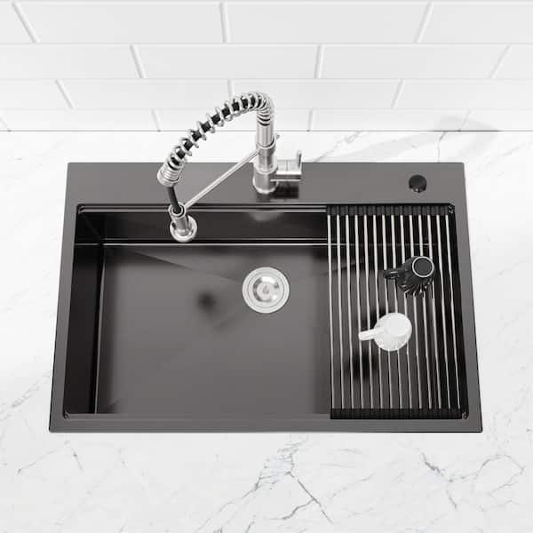 30 in. Drop-In Single Bowl Stainless Steel Modern Workstation Overmount Kitchen Sink with Accessories in Black