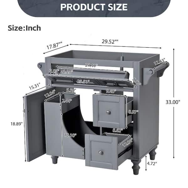 30 in. Gray Bath Vanity Cabinet without Top, with 2 Drawers and a Tip-out Drawer, Freestanding Storage Vanity Cabinet