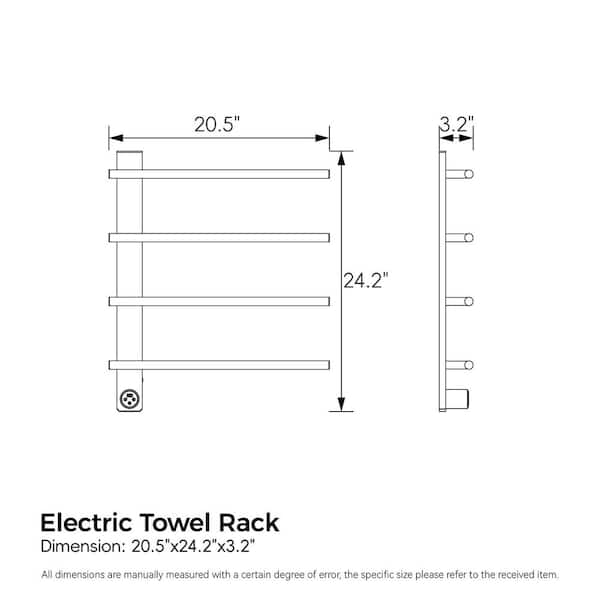 4-Bar Wall Mount Electric Bathroom Towel Warmer with Timer Plug-In & Hardwire Drying Rack Towel Heater in Brushed Nickel